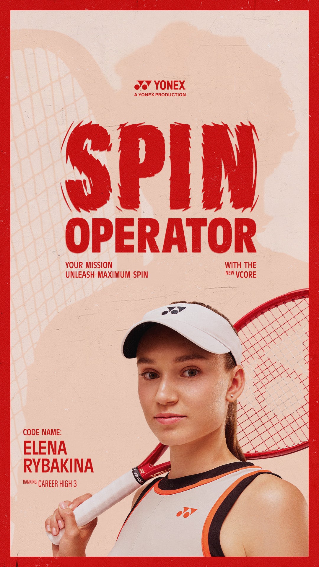 - Velocidad — Mayores velocidades de Swing generan mayor efecto. Cuanto más rápido gires la raqueta, mayor será el efecto. El marco aerodinámico rediseñado de la nueva VCORE reduce la resistencia al viento, lo que permite a todos los jugadores alcanzar velocidades de swing más rápidas.